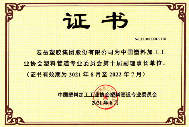 当选全国塑料制品标准化技术委员会会员,通过安全标准化认证,检测中心通过CNAS认证,被认定为河北省企业技术中心。