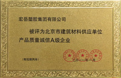 日前,北京市住房和城乡建设委员会召开了塑料管材管件、建筑门窗和聚氨酯防水涂料产品质量评价启动工作会议,并评出首批“A级产品质量诚信企业”,好博塑胶集团有限公司凭借过硬的产品质量和良好的企业信誉,荣获北京市塑料管材管件“A级产品质量诚信企业”称号。