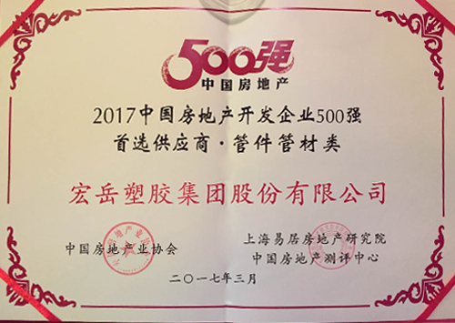 好博荣获“2017年中国房地产开发企业500强首选供应商品牌”