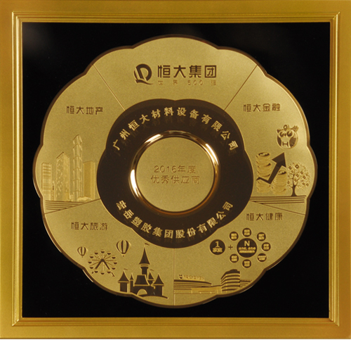 好博荣获“恒大集团2016年度材料设备类优秀供应商”殊荣!
