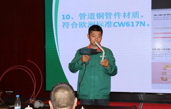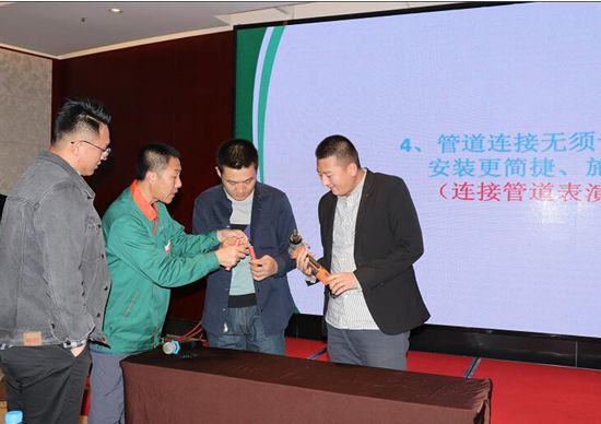 接下来,好博集团暖通工程师汪工为大家讲解了好博1+的施工标准、技术要点及综合产品系统,并着重介绍了好博1+“PE-Xa致纯冷热水管道系统”头尾一根管、维护更便利等独特优势,通过案例讲解、现场演示等方式,让参会人员切实的感受到不一样的产品、不一样的好博1+。