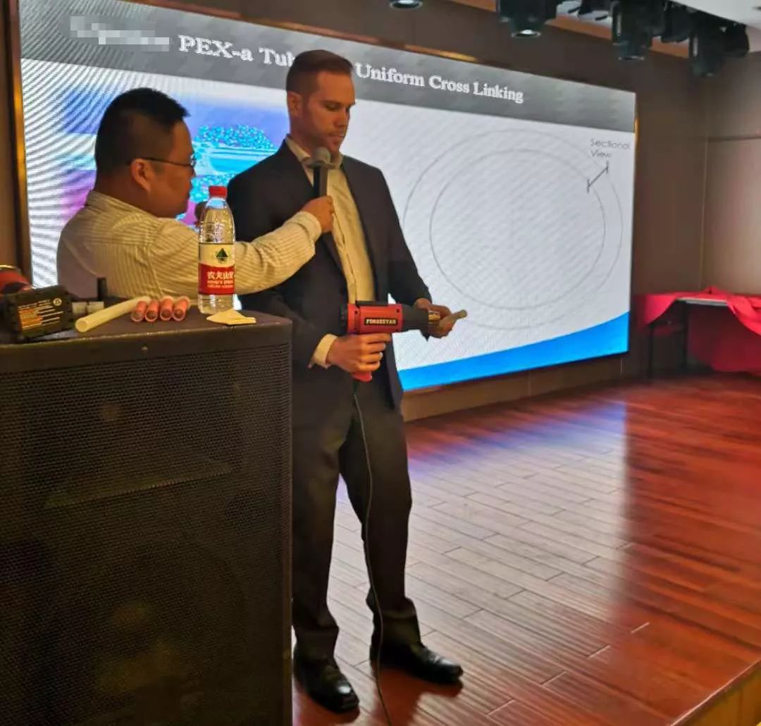 随后,好博集团美国技术总监JOHN先生为大家详尽介绍了PE-Xa"零"漏点给水系统的性能优势及该系统在美国乃至国际市场上的广泛应用情况,让参会人员对国际领先的产品系统与应用技术也增进更深的认识与了解。