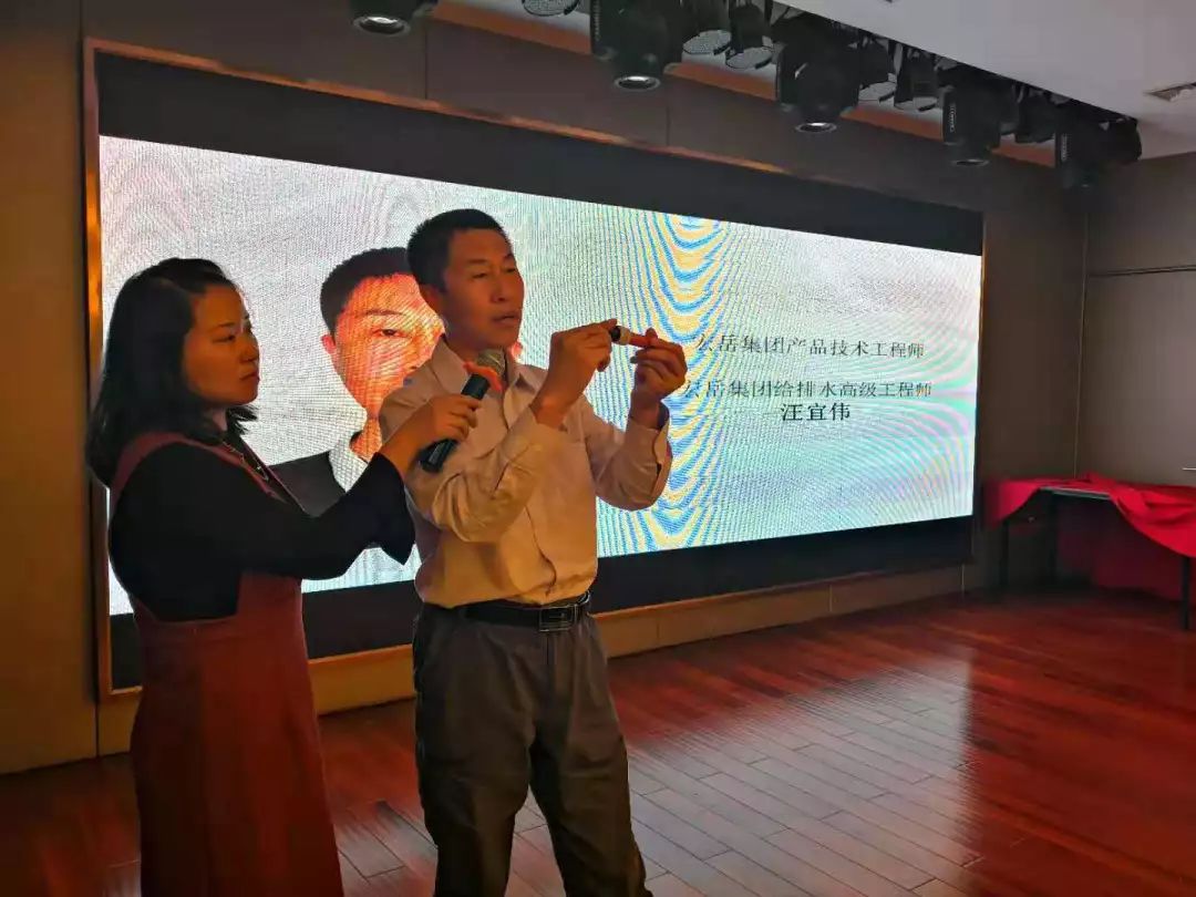 好博集团高级技术工程师汪宜伟先生,对好博1+的施工标准及技术要点进行了现场讲解,并着重介绍了好博1+“PVC快修管件”、“高水封大流量地漏”等特色产品,通过案例讲解、现场演示等多种方式,让参会人员切实的感受到不一样的产品、不一样的好博1+。