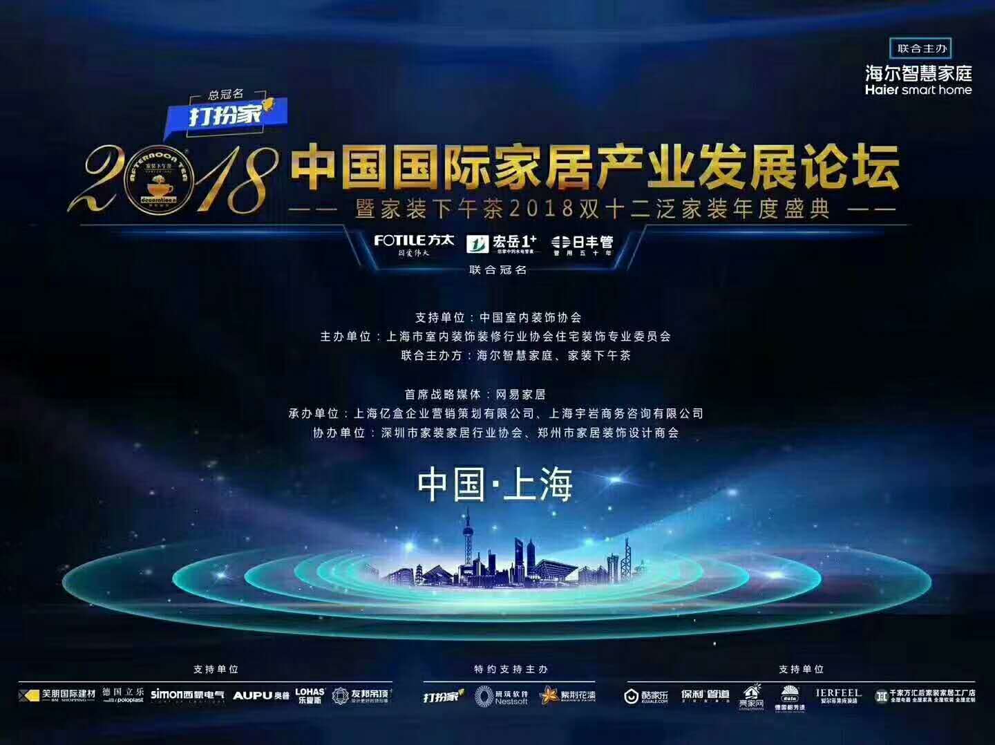 2018年12月12日-14日,2018中国国际家居产业发展论坛暨双十二泛家装年度盛典在上海隆重举行,1500余位家装精英及上下游产业大咖同场交流,分享前沿实践智慧,碰撞行业火花,好博1+作为本次活动联合冠名商荣耀亮相。