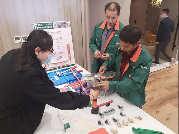 好博1+东北区域吕经理重点介绍了1+产品技术及应用知识,并为大家带来PVC缩口管件、PPR U型三通等创新产品,更着重介绍了PE-Xa管材,不仅通过现场实操展示了PE-Xa管道系统的安全性与便捷性,还首次公布多项对比数据,通过播放不同材质管材的性能对比实验影像再次验证了PE-Xa耐高温、耐高压、记忆性等优异性能,获得与会水电技师们一致认可。