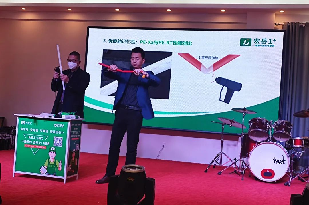 实践是检验技术的唯一标准,好博1+华北区域运营经理李超携团队将各种新品与技术应用带到现场,向各位参会者详实介绍了好博1+产品体系并着重介绍了PE-Xa快易给水系统的优势特点及施工工艺,现场通过实物实例及趣味游戏,充分地展示了好博1+产品的技术先进性和质量可靠性,尤其是PE-Xa管路便捷的连接方式和安全的产品性能,引起了现场嘉宾的高度关注
