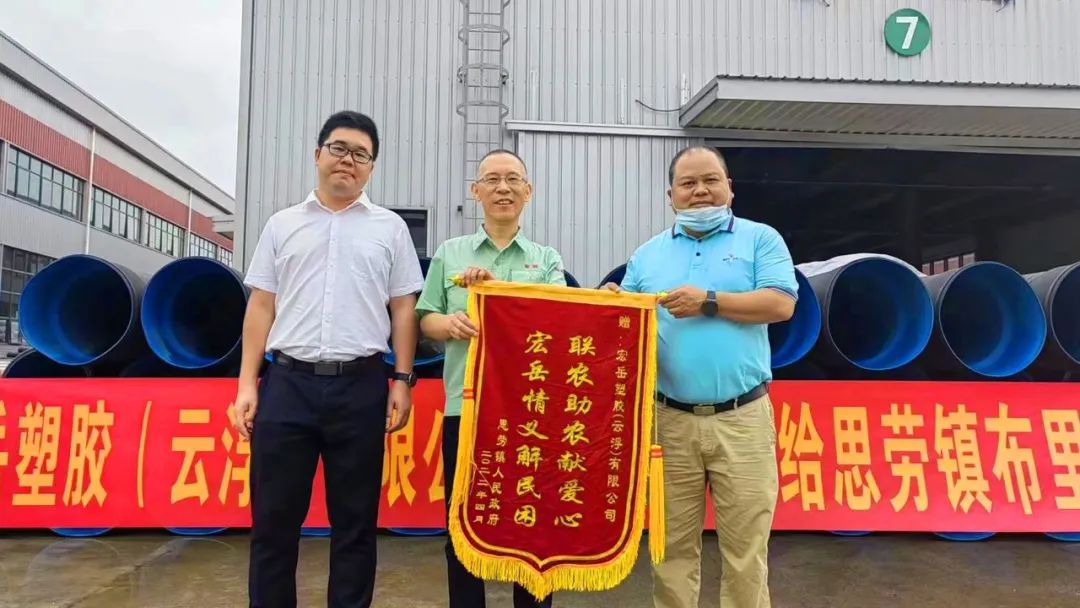 4月26日,好博塑胶(云浮)公司向云浮市思劳镇布里村委捐赠PE双壁波纹管,及时高效地帮助该村解决了农田灌溉改造项目急需的管道材料。