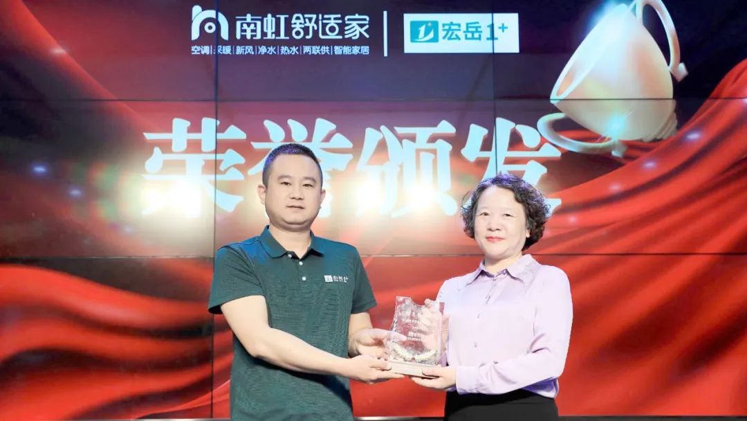 现场好博1+李总作为供方代表发言,并向南虹颁发了好博1+优质服务商的奖牌,并表示:好博作为一家服务全球的塑料管道服务商,将全力保障南虹舒适家装配式3.0工艺的材料服务,助力暖通技术革新。